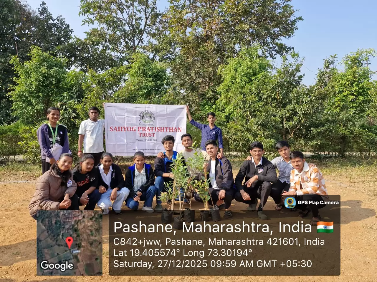 Sahyog Pratishthan organized a tree plantation in collaboration with Greenwave Global Ltd. to promote environmental sustainability and community participation.